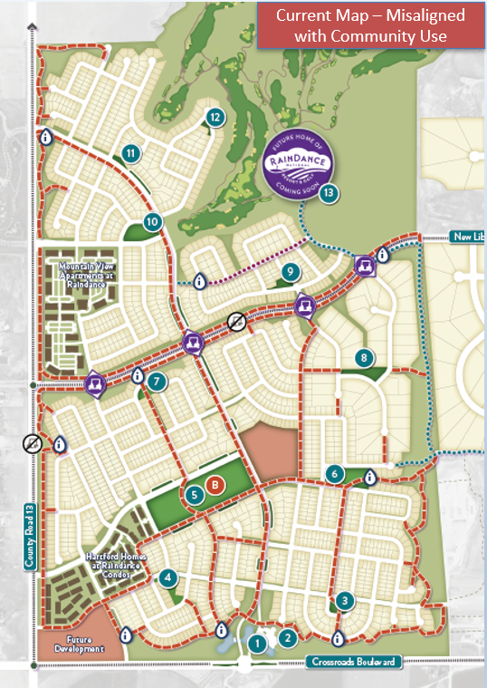 3.19.2026 - Recent meetings with Metro District board member and District management have resulted in new maps to propose to the town of Windsor to allow cart access in problem areas:
